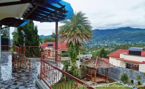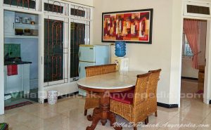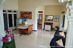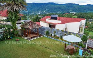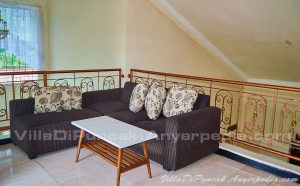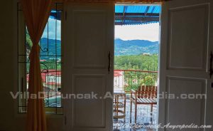 Di teras atas villa tersedia tempat duduk santai yang dilengkapi dengan meja. Dari sini kita dapat menikmati pemandangan yang menyejukkan mata. Bersantai sejenak disini sambal menyeruput secangkir minuman hangat sangatlah menyenangkan.[su_spacer size=”20″]Untuk urusan makanan tidak perlu khawatir karena di villa ini tersedia fasilitas dapur lengkap dengan peralatan memasak. Jika anda ingin lebih praktis dapat juga memesan catering melalui pengelola villa.