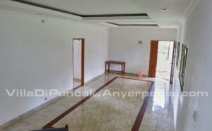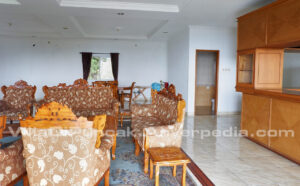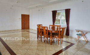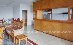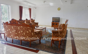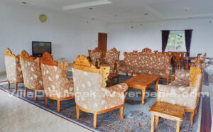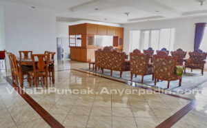 Di dalam villa tersedia ruang kumpul keluarga berukuran cukup besar dilengkapi sofa dan tv. Meja makan. Tersedia fasilitas dapur lengkap dengan peralatan memasak, rice cooker, dispenser air, kulkas serta peralatan makan. Kita juga dapat memesan catering melalui pengelola villa berupa nasi kotak maupun prasmanan. Bagi anda yang ingin berlibur di villa ini dapat menghubungi kami untuk booking atau menanyakan lebih detail tentang villa Faten. Nomor telepon tertera di bagian akhir halaman ini.