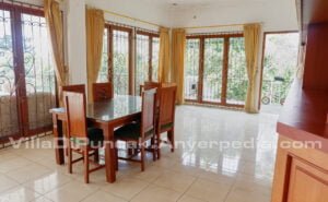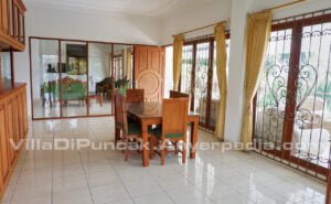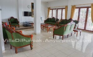 Di dalam villa tersedia ruang kumpul keluarga berukuran cukup besar dilengkapi sofa dan tv. Meja makan. Tersedia fasilitas dapur lengkap dengan peralatan memasak, rice cooker, dispenser air, kulkas serta peralatan makan. Kita juga dapat memesan catering melalui pengelola villa berupa nasi kotak maupun prasmanan. Bagi anda yang ingin berlibur di villa ini dapat menghubungi kami untuk booking atau menanyakan lebih detail tentang villa Faten 4 kamar tidur. Nomor telepon tertera di bagian akhir halaman ini.