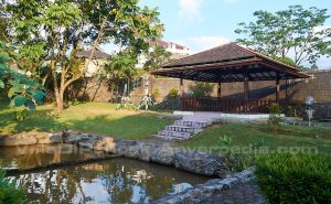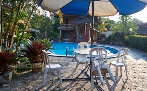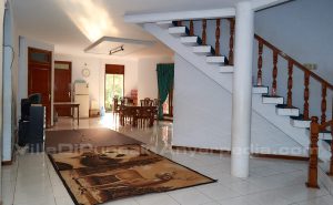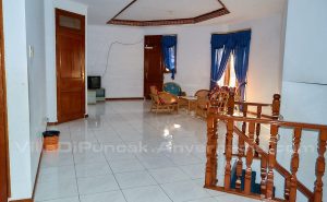 Villa Maharani di puncak terdiri dari 2 lantai yang memiliki 4 kamar tidur dan 4 kamar mandi. Kamar tidur memiliki kamar mandi dalam yang dilengkapi shower dan juga water heater. Kapasitas maksimal villa Maharani sebanyak 50 orang tamu.[su_spacer size=”20″]Villa Maharani memiliki halaman di sisi depan, samping dan juga belakang villa. Sisi depan villa tersedia gazebo berukuran besar yang dikelilingi taman dan juga terdapat kolam ikan. Sedangkan fasilitas kolam renang berada di sisi villa yang memiliki view pegunungan dan juga fasilitas tempat duduk, patio dan juga meja untuk bersantai. Kolam renangnya bagus dan bentuknya melengkung menambah nilai keindahan.
