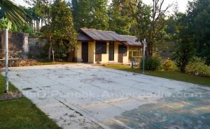 Di pekarangan belakang tersedia fasilitas lapangan badminton yang juga dapat dimanfaatkan untuk bermain futsal serta kegiatan outdoor lainnya. Villa Maharani memiliki lingkungan pekarangan yang cukup luas dan dikelilingi taman serta pepehonan yang membuat nyaman.