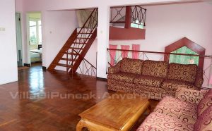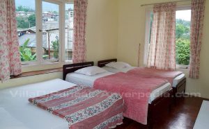 Villa Nadine di puncak terdiri dari 2 lantai yang memiliki 3 kamar tidur dan 2 kamar mandi. Villa ini dibangun diatas lahan yang cukup luas dimana pekarang depan villa berupa halaman rumput yang luas dan di sisi belakang villa terdapat kolam renang dengan view sawah dan gunung. Kolam renang ini sangat menyenangkan karena lingungan sekitarnya terkesan lebih alami.