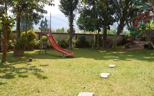 Pekarangan Vila Romy di puncak terdiri dari taman-taman yang ditumbuhi rumput hijau. Pekarangan berada di sisi depan samping dan belakang. Di pekarangan depan terdapat kids playground dimana kita juga bisa menikmati pemandangan pegunungan. Pekarangan samping merupakan halaman rumput dan pekarangan belakang terdapat teras dilengkapi sofa.