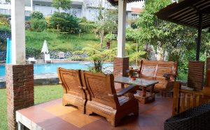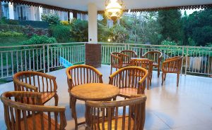 Disamping kolam renang terdapat aula semi terbuka yang dilengkapi meja kursi layaknya di restoran. Disini juga terdapat fasilitas sound sistem dan karaoke. Cocok untuk acara makan bersama dan juga acara berkumpul lainnya.