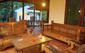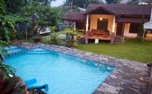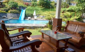 Suasana di dalam villa terasa sangat nyaman. Fasilitas pun lengkap seperti dapur dengan peralatan memasak, kulkas, kompor gas, dispenser air dan juga meja makan. Teras memiliki area cukup luas dilengkapi furniture dengan pemandangan ke arah kolam.