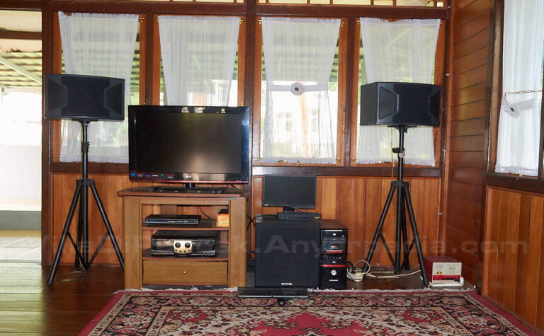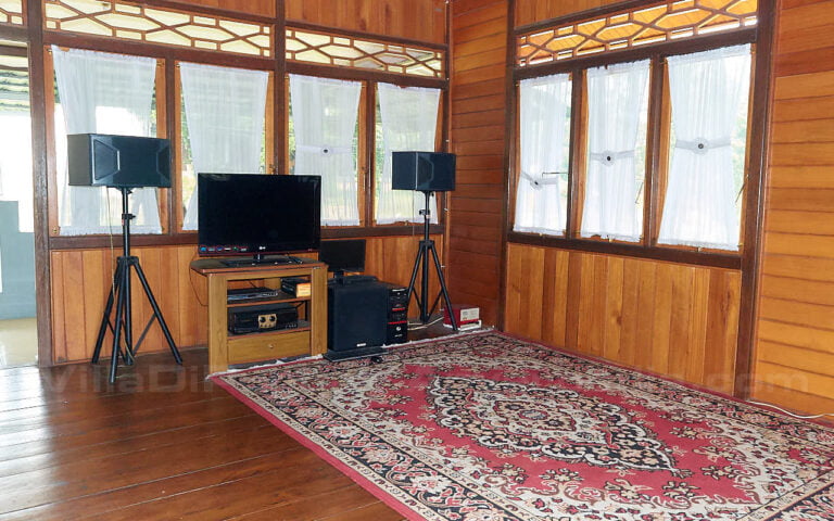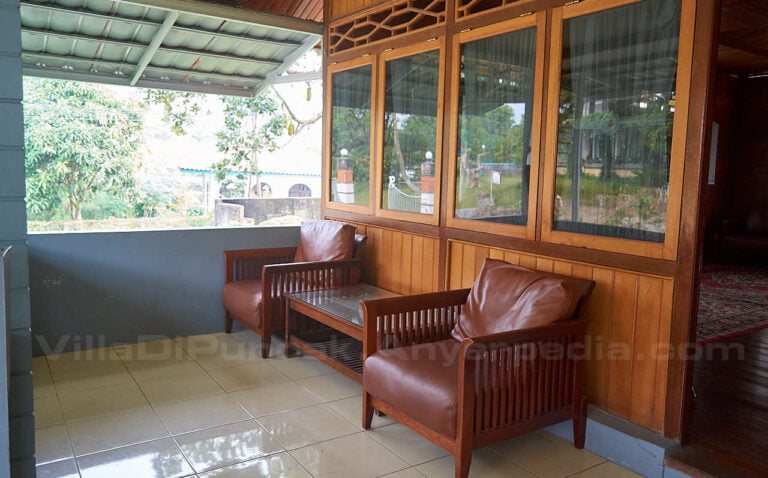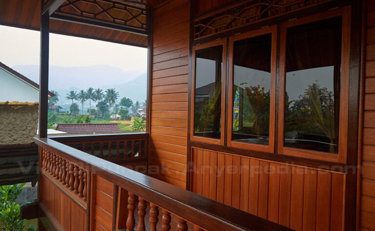 Tersedia 2 gazebo tempat untuk bersantai. Villa Anjung balak memiliki balkon yang menyajikan pemandangan pegunungan. Terdapat 2 Balkon yang luas dilengkapi furniture dan berada di sisi depan dan belakang villa.