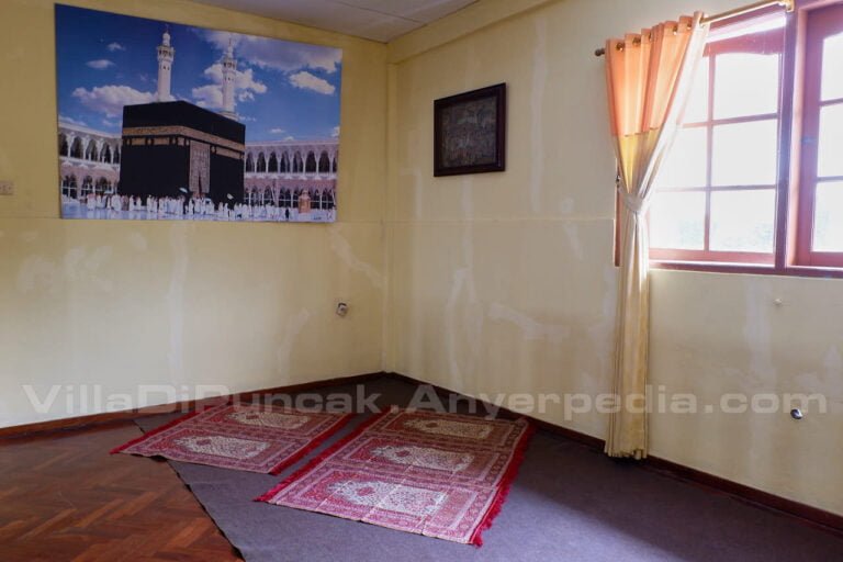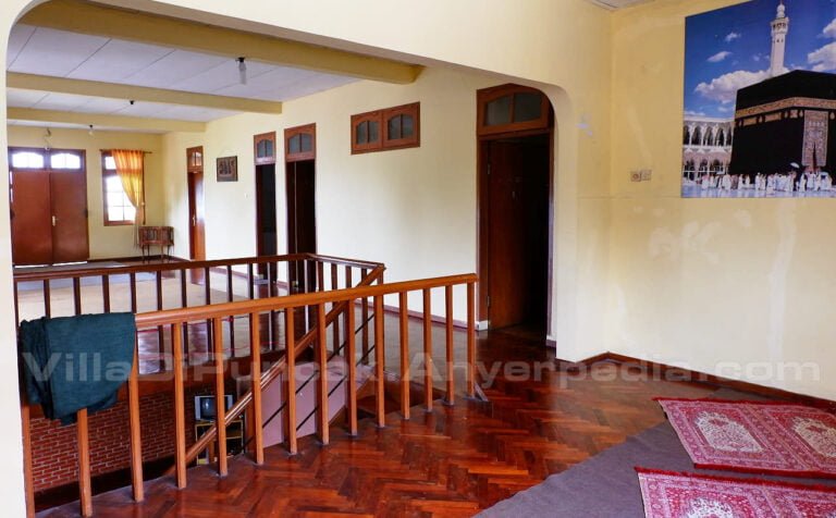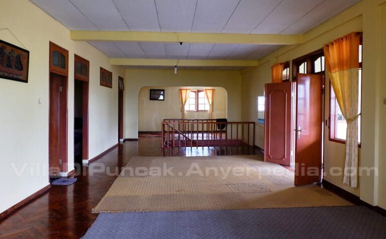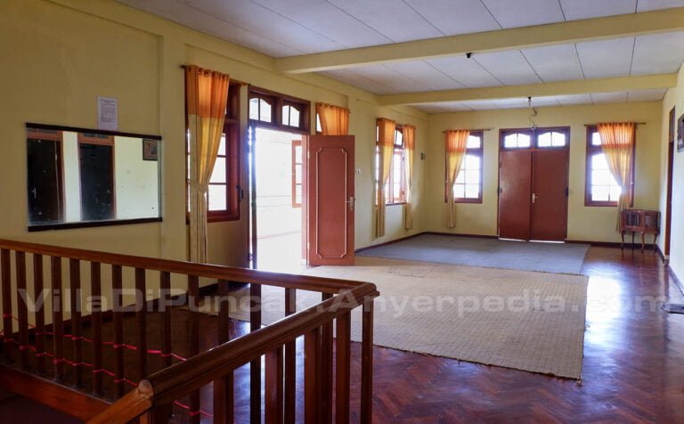 Didalam villa dilengkapi dengan sejumlah fasilitas penunjang seperti ruang kumpul keluarga yang luas di lantai 2. Meja, kursi, sofa dan juga karpet lantai. Teras di lantai 2 memiliki view pemandangan indah yang tentunya sangat nyaman bersantai disini. Villa Pelangi menyediakan dapur lengkap dengan peralatan memasak, kompor, kulkas, dispenser air serta meja makan dan peralatan makan. Tersedia pula ruangan musholla yang cukup lega di lantai 2. Bagi anda yang ingin berlibur sekeluarga di puncak maupun rombongan dalam jumlah maksimum 70 orang maka villa pelangi ini sesuai dengan kebutuhan anda. Silahkan menghubungi kami di nomor yang tertera di akhir halaman ini untuk menanyakan lebih detail maupun cek ketersediaan di tanggal menginap yang diinginkan.
