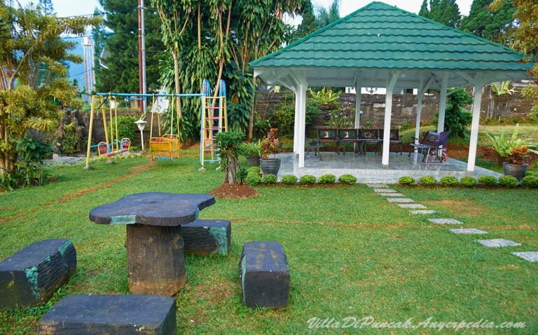 Tidak jauh dari kolam renang terdapat gazebo yang dilengkapi tempat duduk dan meja. Disisi gazebo adalah wahana permainan anak-anak. Fasilitas yang lengkap ini membuat betah siapa saja yang menginap disini.